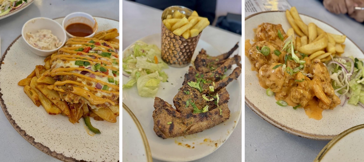 Beautiful decor Welcoming, friendly and respectful staff. We ordered a light brunch. Food was fresh and delicious. Perfect and authentic taste. Grilled Lamb chops were nicely cooked to perfection (not burnt). Dynamite prawns and chicken cubes were brilliant in Chef’s special platter. Lot’s of choices on drink menu. My wife ordered Mocha and she loved it. Desi tea was great and good thing was they served sugar separately. Paratha smashed burger was also very good. Above all the location, parking, food and decor, their manager Mr Sikandar was very friendly, respectful and hospitable. He was attentive to every detail. Highly recommend this place. Will definitely come back again to try other dishes.
